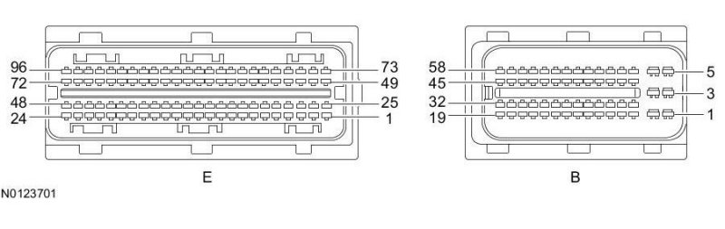 Powertrain Control Module (PCM) Connector - For PCM connector views or reference values, refer to Reference Values.