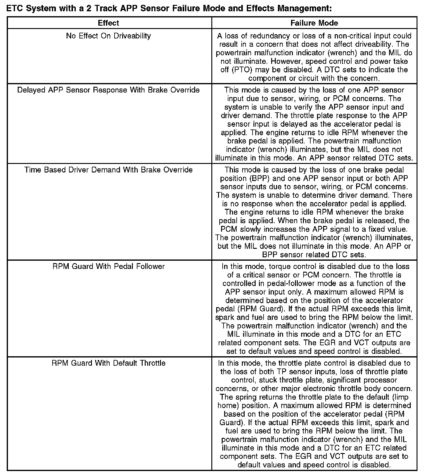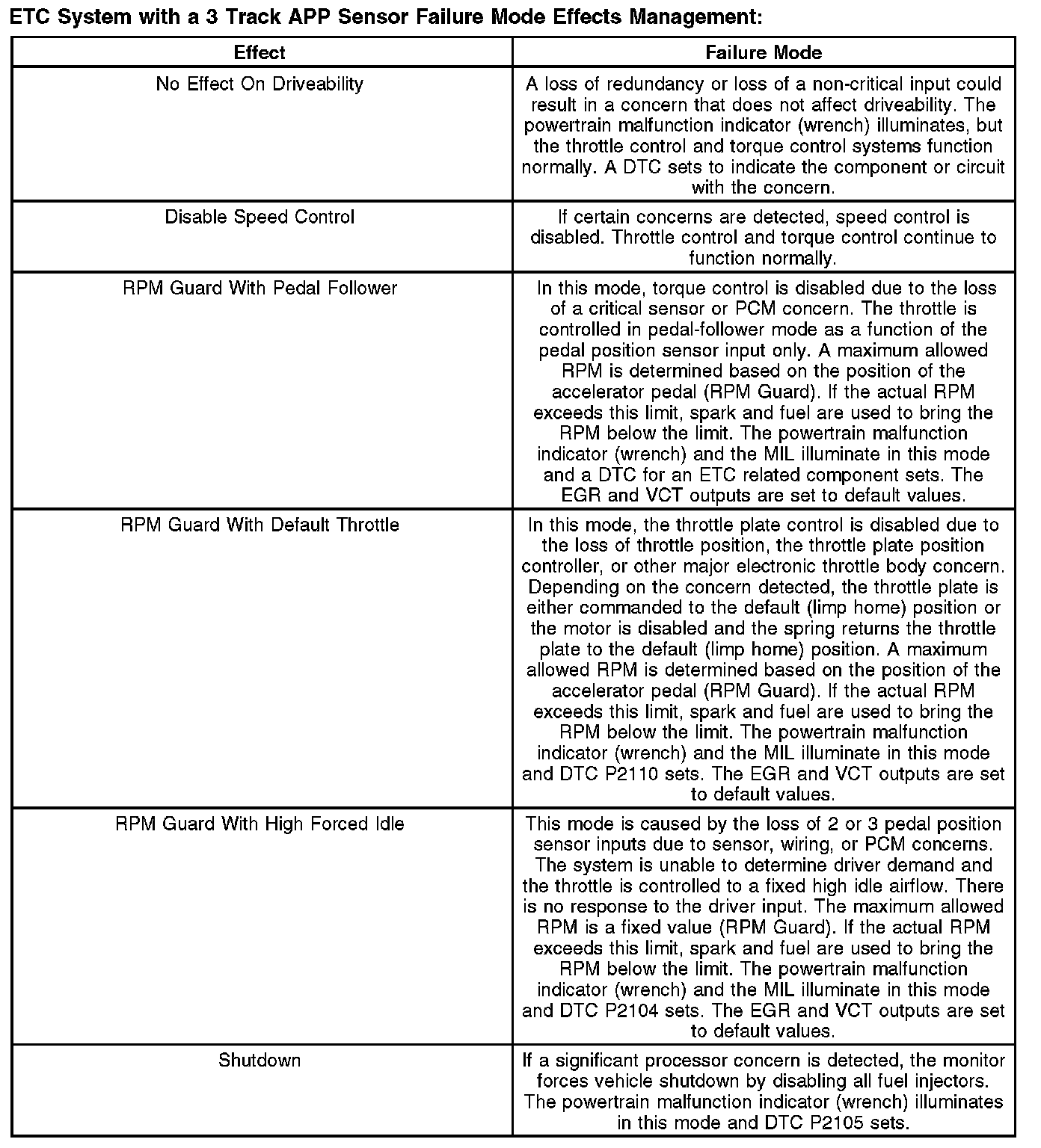 The ETC monitor system is distributed across 2 processors within the PCM: the main powertrain control processor unit (CPU) and a separate monitoring processor. The primary monitoring function is carried out by the independent plausibility checker software, which resides on the main processor. It is responsible for determining the driver-demanded torque and comparing it to an estimate of the actual torque delivered. If the generated torque exceeds driver demand by a specified amount, appropriate corrective action is taken.