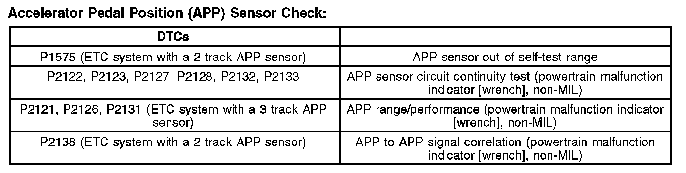 Depending on the application either a 2 track or 3 track APP sensor is used. For additional information on the APP sensor, refer to Engine Control Components.