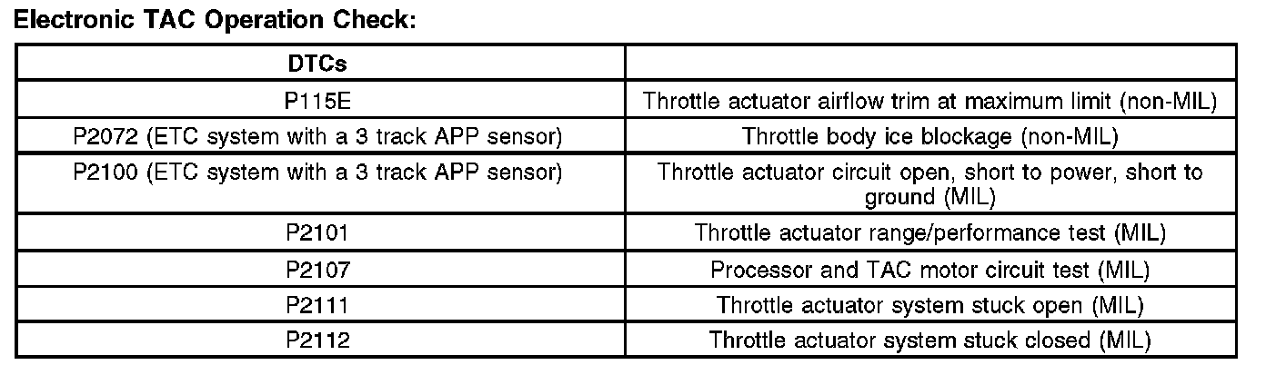 Electronic Throttle Actuator Control (TAC) Output