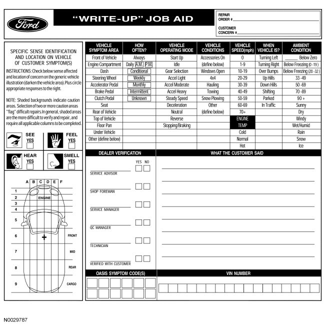 To assist the service advisor and the technician, a Write-Up Job Aid used during the interview process is included with this material. The Write-Up Job Aid serves as a place to record all important symptom information.