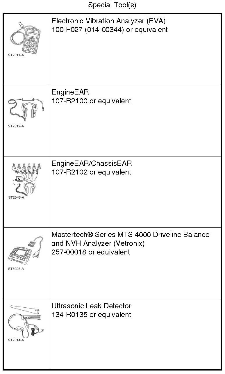 The following diagnostic tools and techniques can be used separately or in conjunction with each other to aid in the diagnosis of NVH symptoms. They are listed in order of preference for ease in their use for locating these symptoms.
