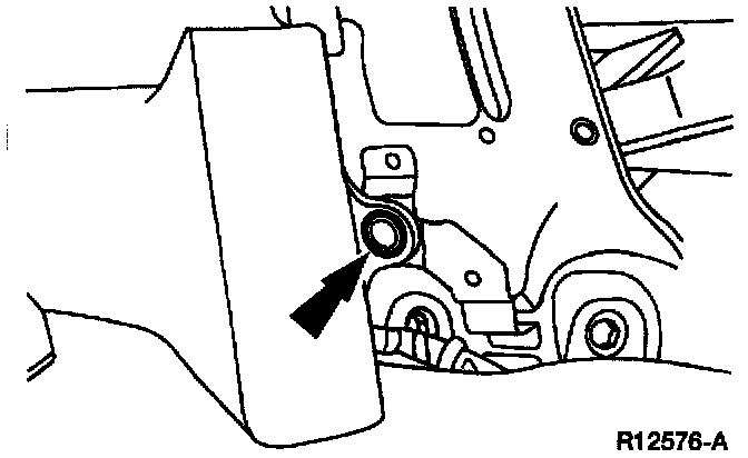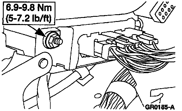 6. Remove the RH air bag diagnostic monitor nut and slide the air bag diagnostic monitor out the RH side.