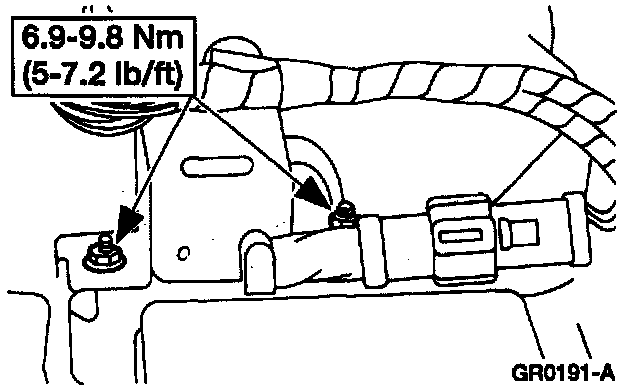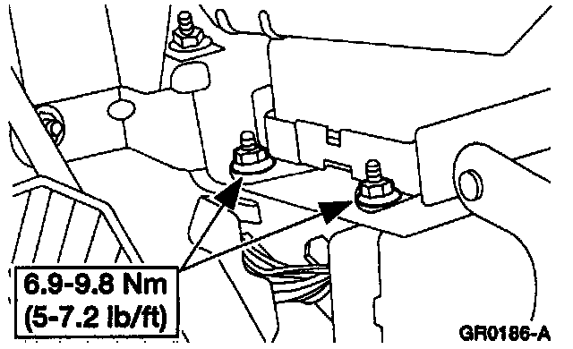 5. Loosen the two LH air bag diagnostic monitor nuts.