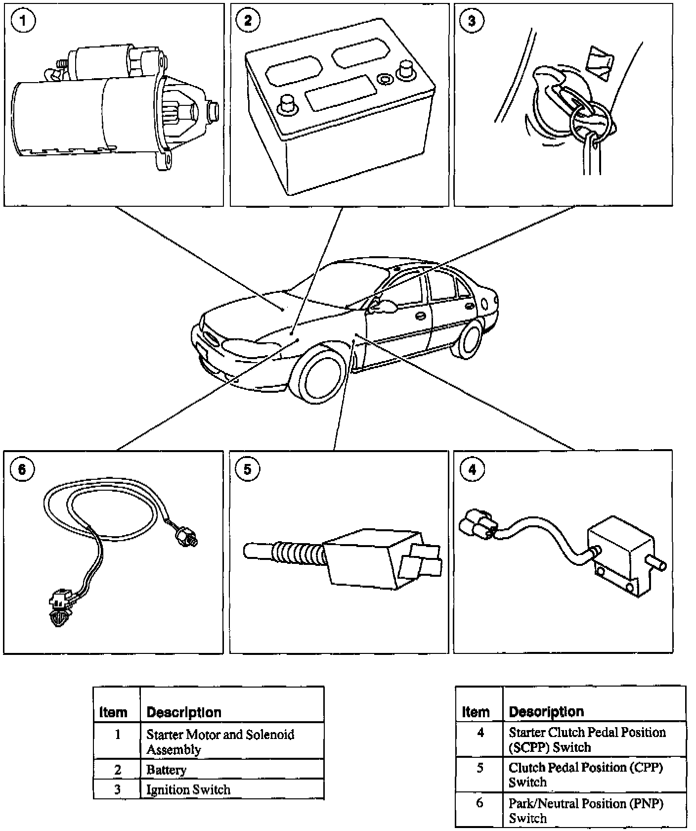 The Starter Clutch Pedal Position (SCPP) switch is mounted on the clutch pedal bracket. The SCPP switch prevents the engine from being started until the clutch pedal is fully depressed. The SCPP switch is manually closed when the clutch pedal is fully depressed, and then allows power to the starter solenoid.