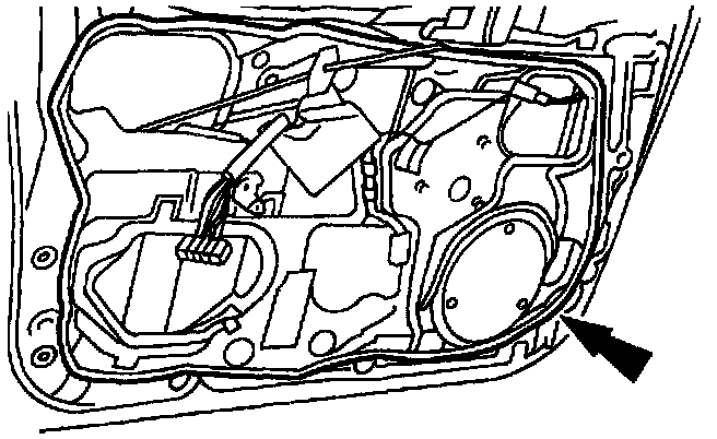 5. Remove the two bolts from the bottom of the door window glass and remove the door window glass.