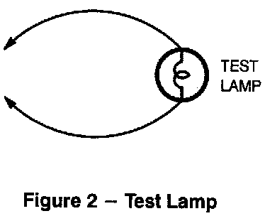 Connect one lead of test lamp to a known good ground or the negative (-) battery terminal. Test for voltage by touching the other lead to the test point. Bulb goes on when the test point has voltage.