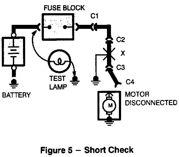 WARNING: Never use a jumper wire across loads (motors,etc.) connected between hot and ground. This direct battery short may cause injury or fire.