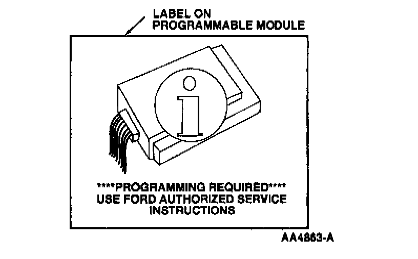 A replacement PCM will display a label as shown. This indicates the need to retrieve VID data from the original PCM before removing from the vehicle. Refer to the flash VID block update procedure. After retrieving the VID data from the original PCM, install the new PCM. Select "Restore PCM config. (1)" to download the stored data. If the original PCM is nonfunctional, it becomes necessary to manually reprogram the VID block. The scan tool is used to perform this procedure and is done through the "PCM Programming" selection as described by the flash EEPROM procedure below. Follow screen instructions.