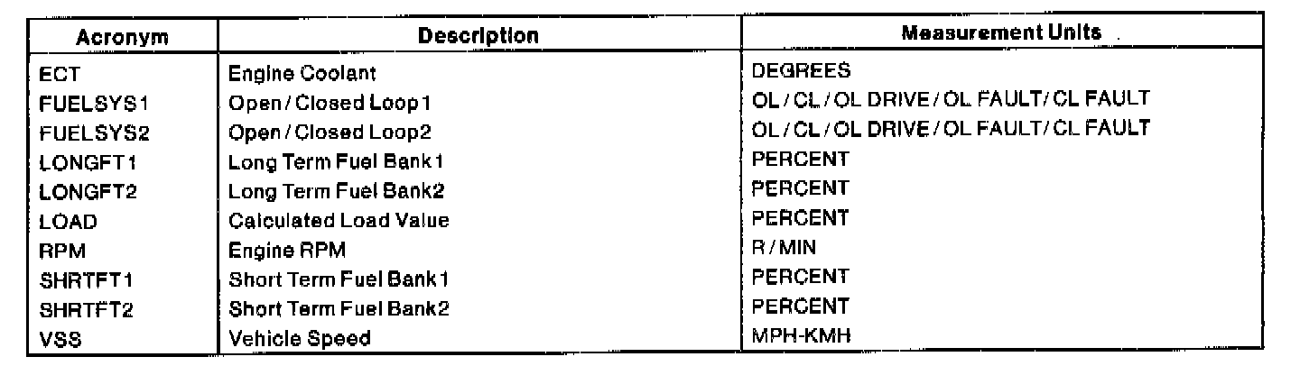 Freeze Frame Data allows access to emission-related values from specific generic PIDs. These values are stored the instant an emission-related DTC is stored in Continuous Memory. This provides a snapshot of the conditions that were present when the DTC was stored. Once one set of freeze frame data is stored, this data will remain in memory even if another emission-related DTC is stored, with the exception of Misfire or Fuel System DTCs. Once freeze frame data for Misfire or Fuel System DTC is stored, it will overwrite any previous data, and freeze frame will not be further overwritten. When a DTC associated with the freeze frame is erased or a PCM memory reset is performed, new freeze frame data can be stored again. In the event of multiple emission-related DTCs in memory, always note the DTC for the freeze frame data.