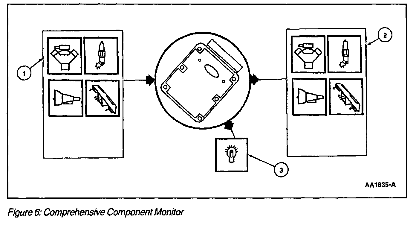 The Comprehensive Component Monitor (CCM) monitors for malfunctions in any powertrain electronic component or circuit that provides input or output signals to the PCM that can affect emissions and is not monitored by another OBD II monitor. inputs and outputs are, at a minimum, monitored for circuit continuity or proper range of values. Where feasible, inputs are also checked for rationality, outputs are also checked for proper functionality.