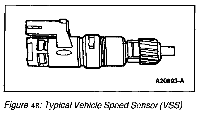 The Vehicle Speed Sensor (VSS) is a variable reluctance or Hall-effect sensor that generates a waveform with a frequency that is proportional to the speed of the vehicle. If the vehicle is moving at a relatively low velocity, the sensor produces a signal with a low frequency. As the vehicle velocity increases, the sensor generates a signal with a higher frequency. The PCM uses the frequency signal generated by the VSS (and other inputs) to control such parameters as fuel injection, ignition control, transmission/ transaxle shift scheduling and torque converter clutch scheduling.