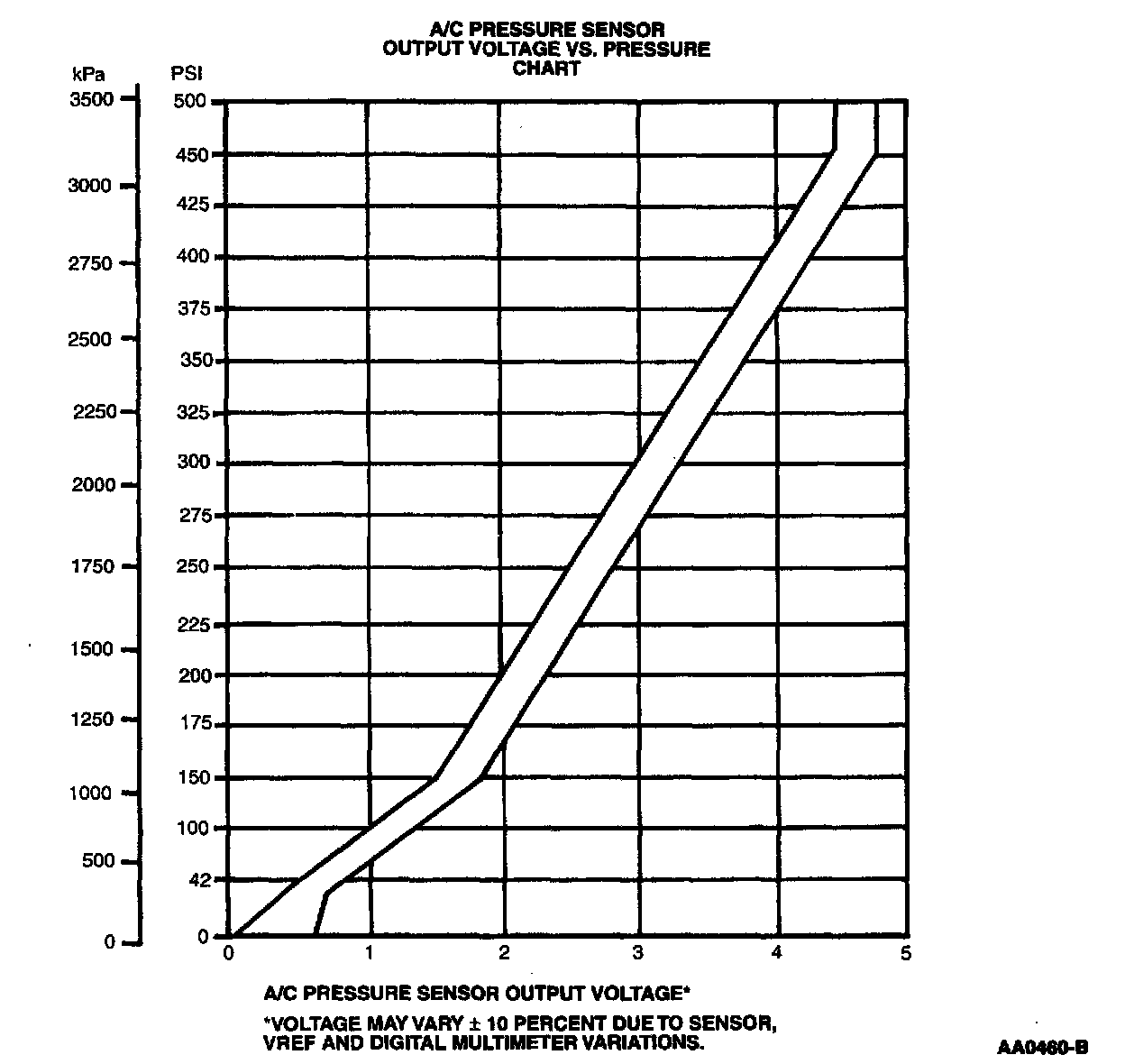 A/C Pressure Sensor Output Voltage VS Pressure Chart: