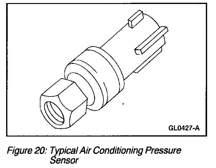 The air conditioning pressure (A/C pressure) sensor is located in the high pressure (discharge) side of the air conditioning A/C system. The A/C pressure sensor provides a voltage signal to the Powertrain Control Module (PCM) that is proportional to the A/C pressure. The PCM uses this information for A/C clutch control, fan control and idle speed control.
