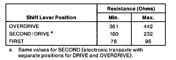 4. Record resistance in every gear position while moving the transaxle range selector lever to each position.