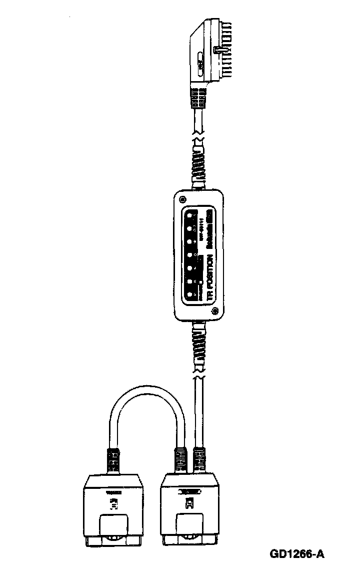 CAUTION: Be sure that the correct 1 2-pin sensor connector is connected to the proper sensor. If the wrong connection is made or the slide switch is in the wrong position, the LEDs on the TR position cable will give a false or no response during testing. This will cause the replacement of good parts.