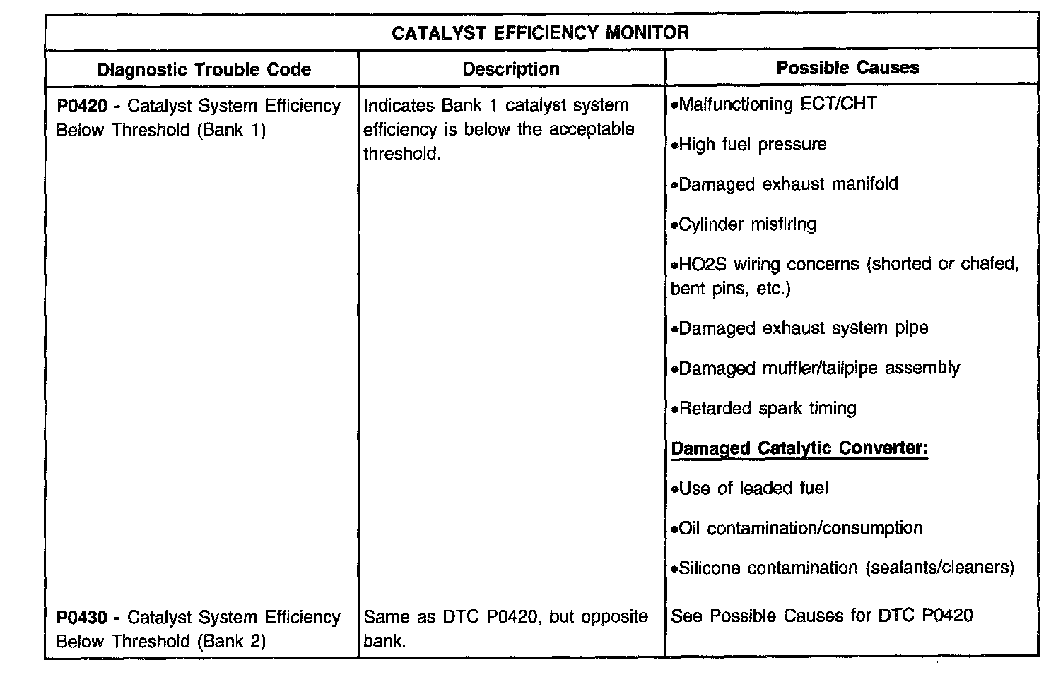 D2.) Catalyst Efficiency Monitor - Diagnostic Trouble Codes