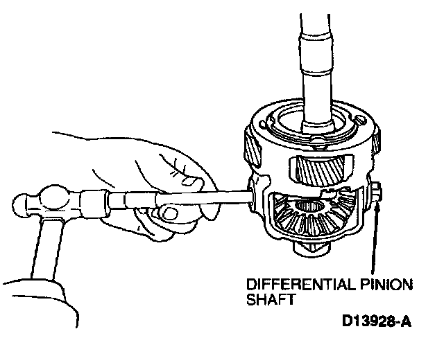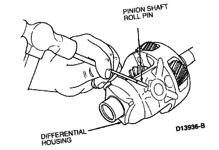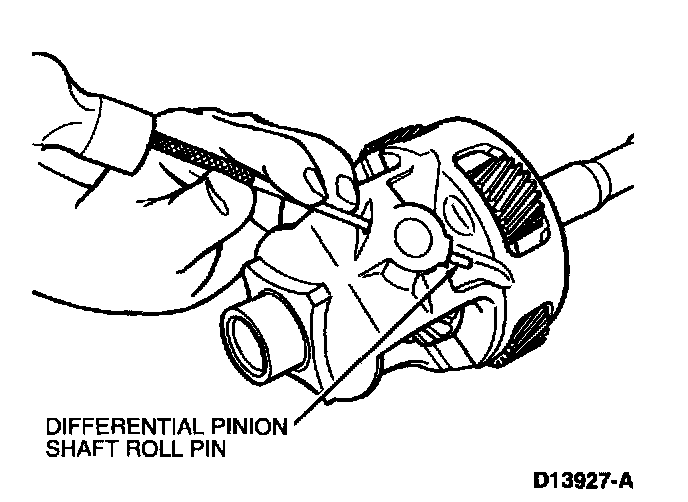 7. IF NECESSARY, use a drift to drive out differential pinion shaft roll pin.