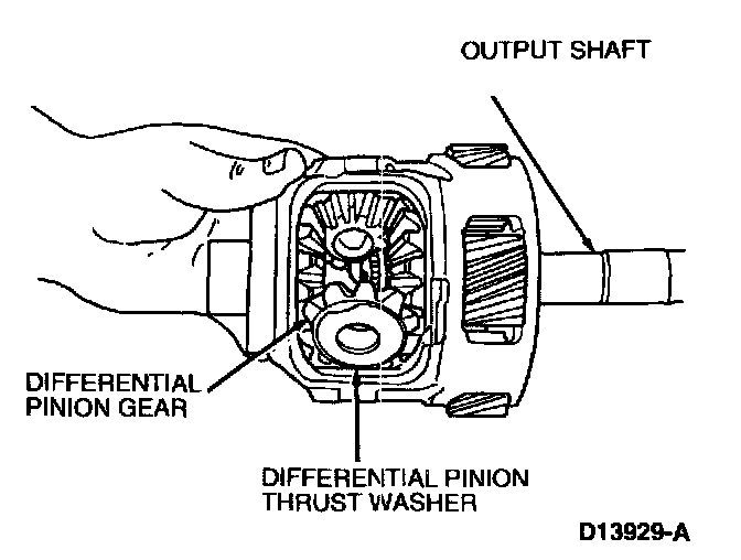9. Rotate the output shaft to remove two differential pinion gear and two differential pinion thrust washer.
