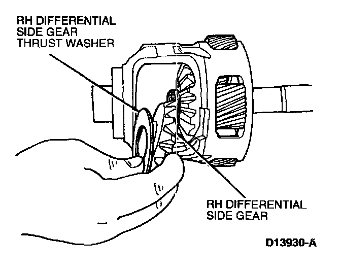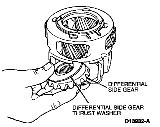 10. Remove RH differential slide gear and differential side gear thrust washer from differential case.