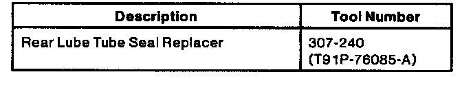 4. Install rear lubrication tube seal using Rear Lube Tube Seal Replacer 307-240 (T91P-76085-A).