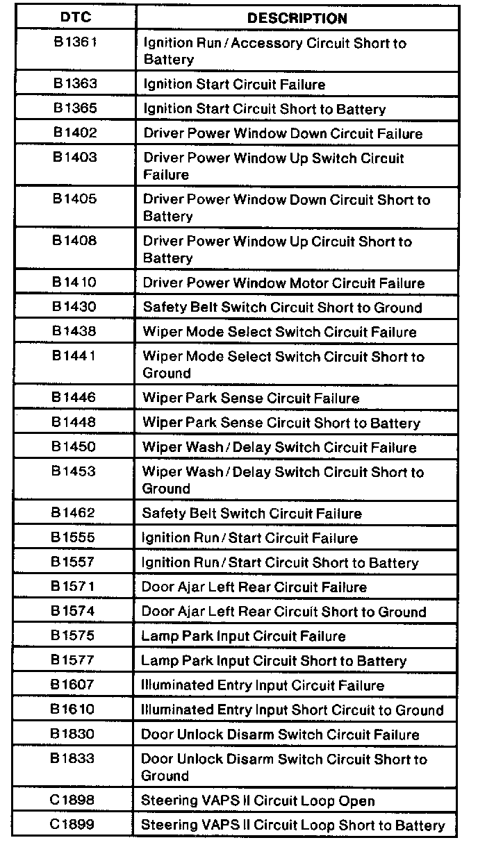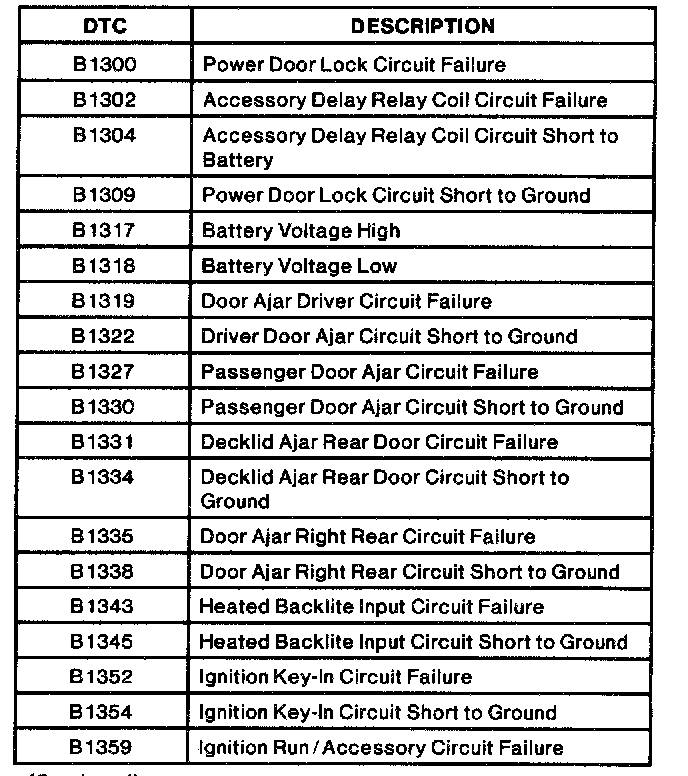 GEM Module Wiggle Test Diagnostic Trouble Code (DTC) Index