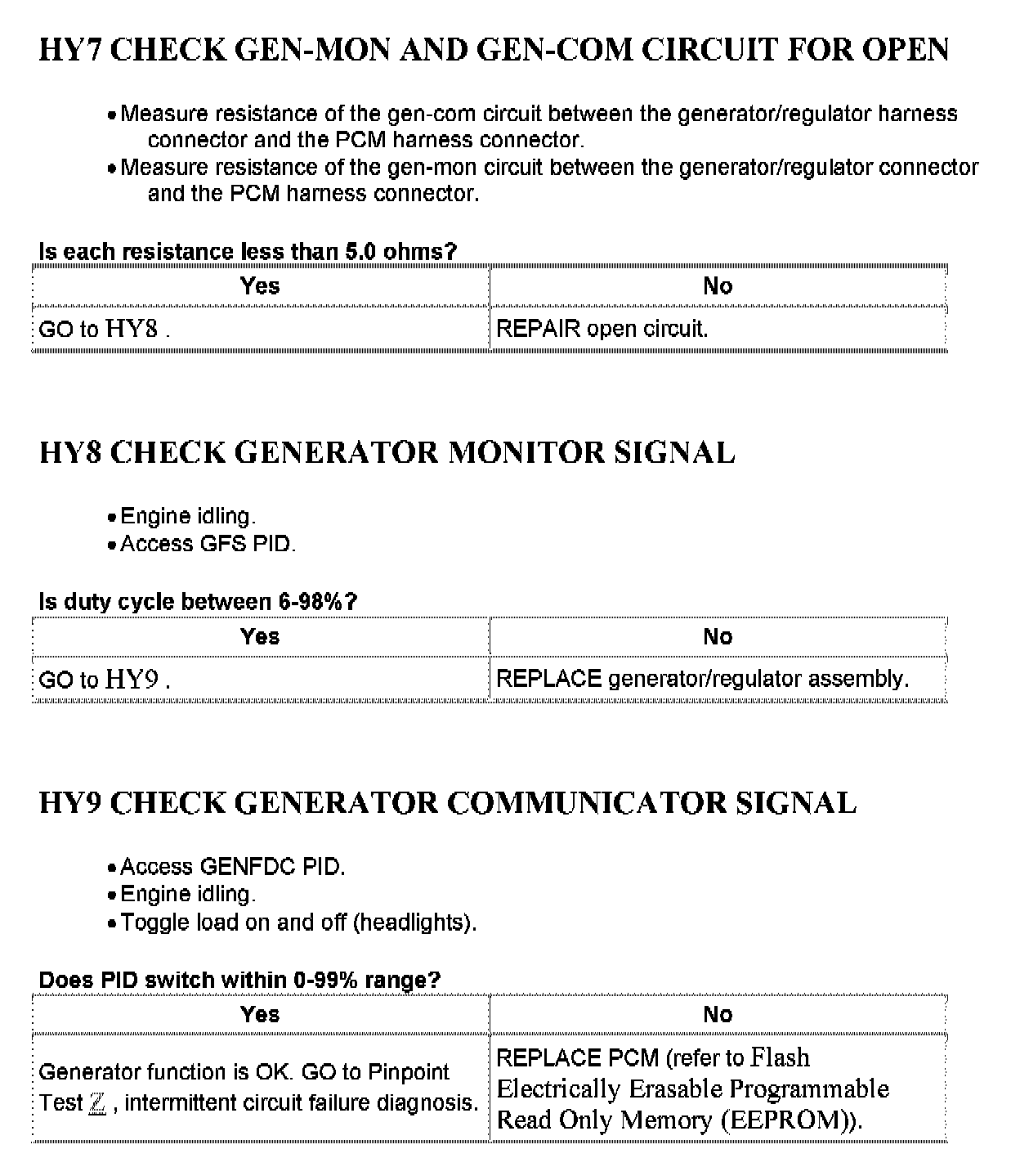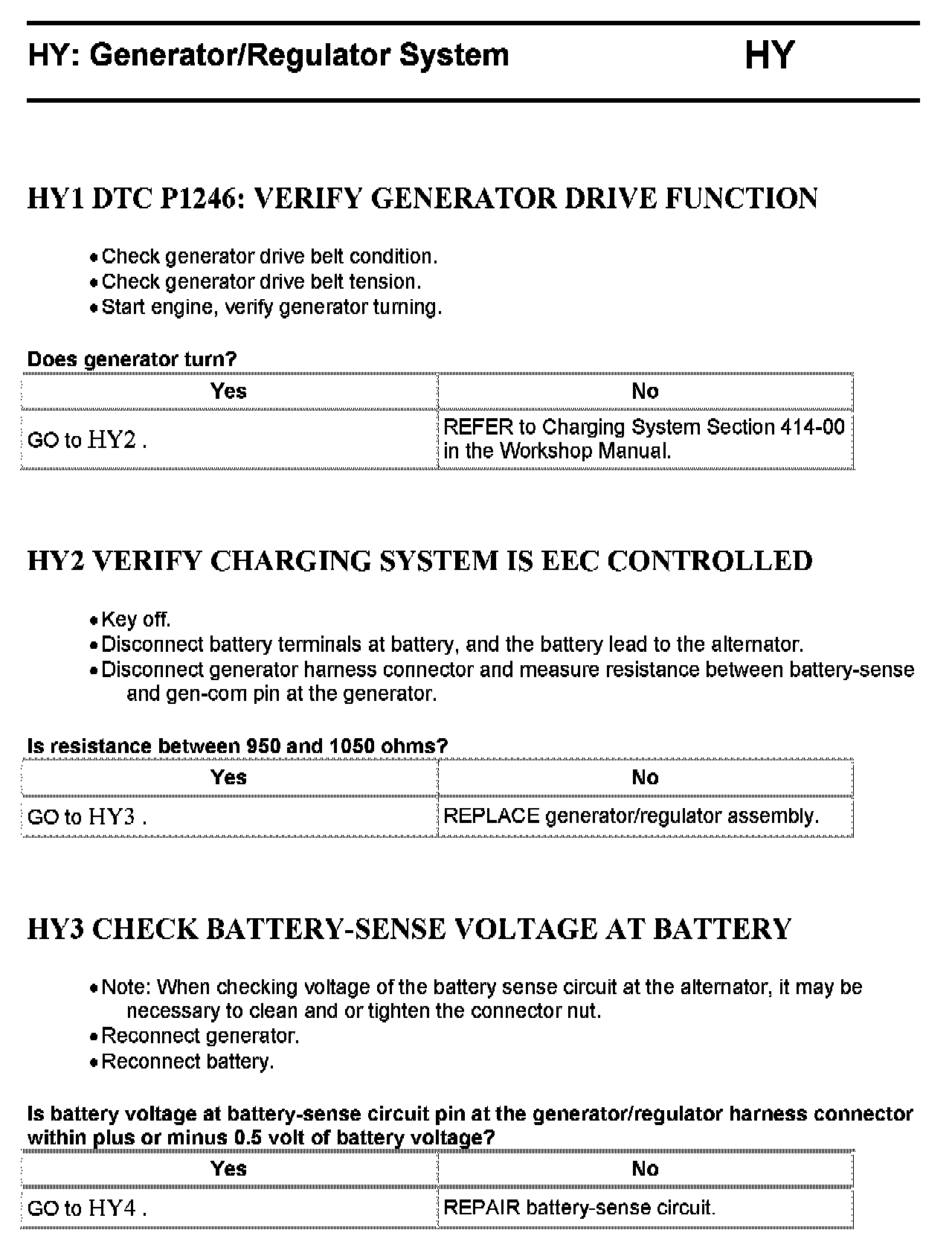 Tests HY: Generator/Regulator System