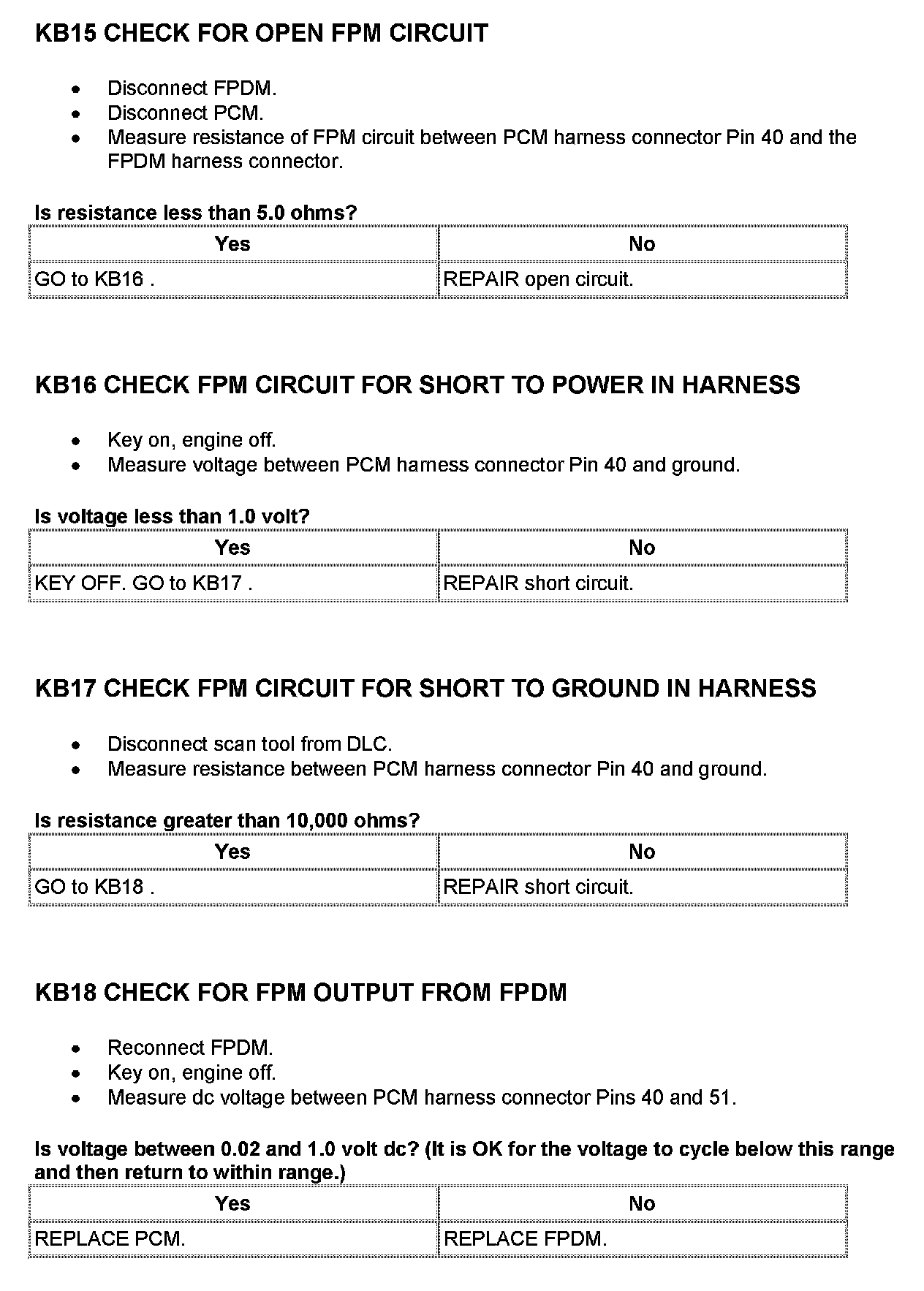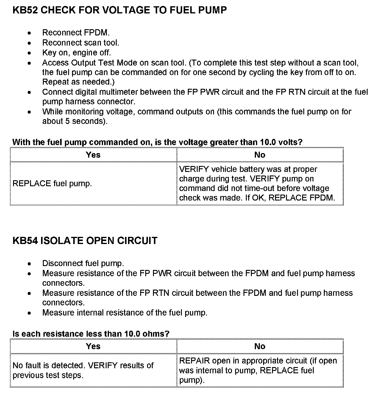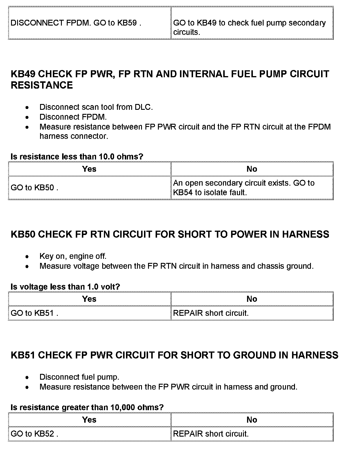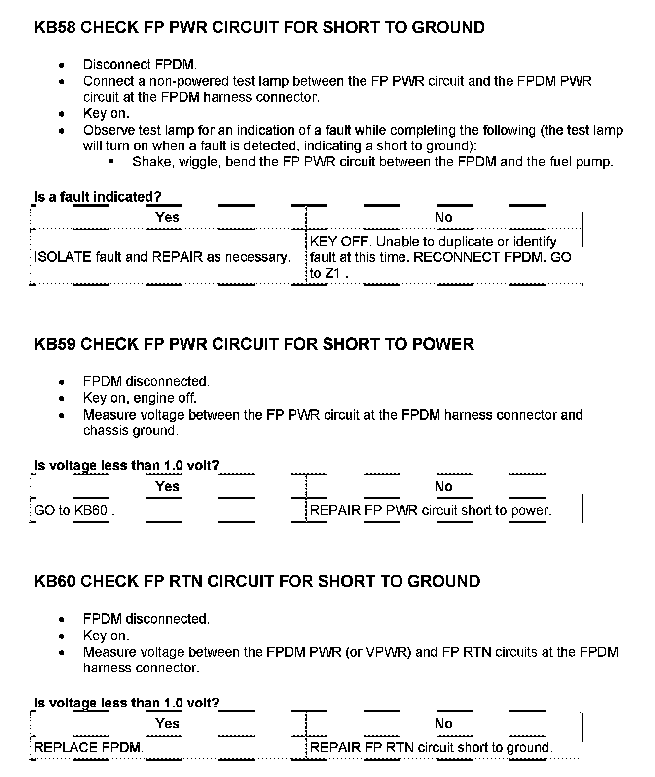Tests KB: Fuel Pump Driver Module (FPDM)
