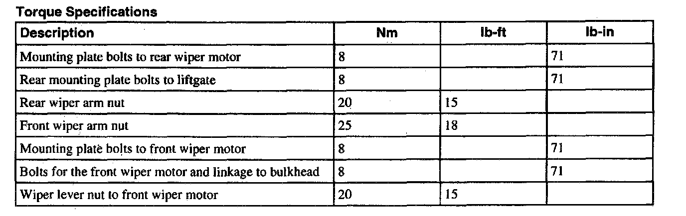 Torque Specifications: