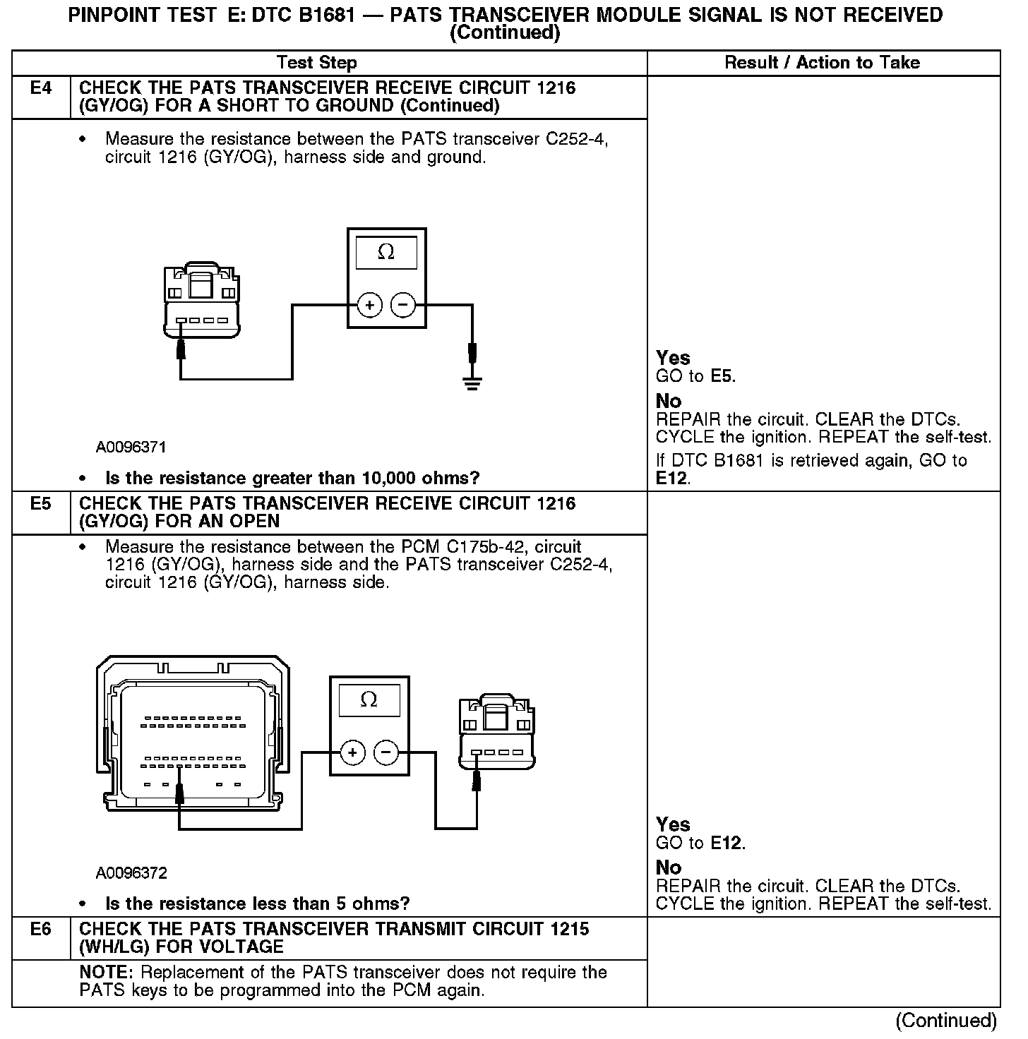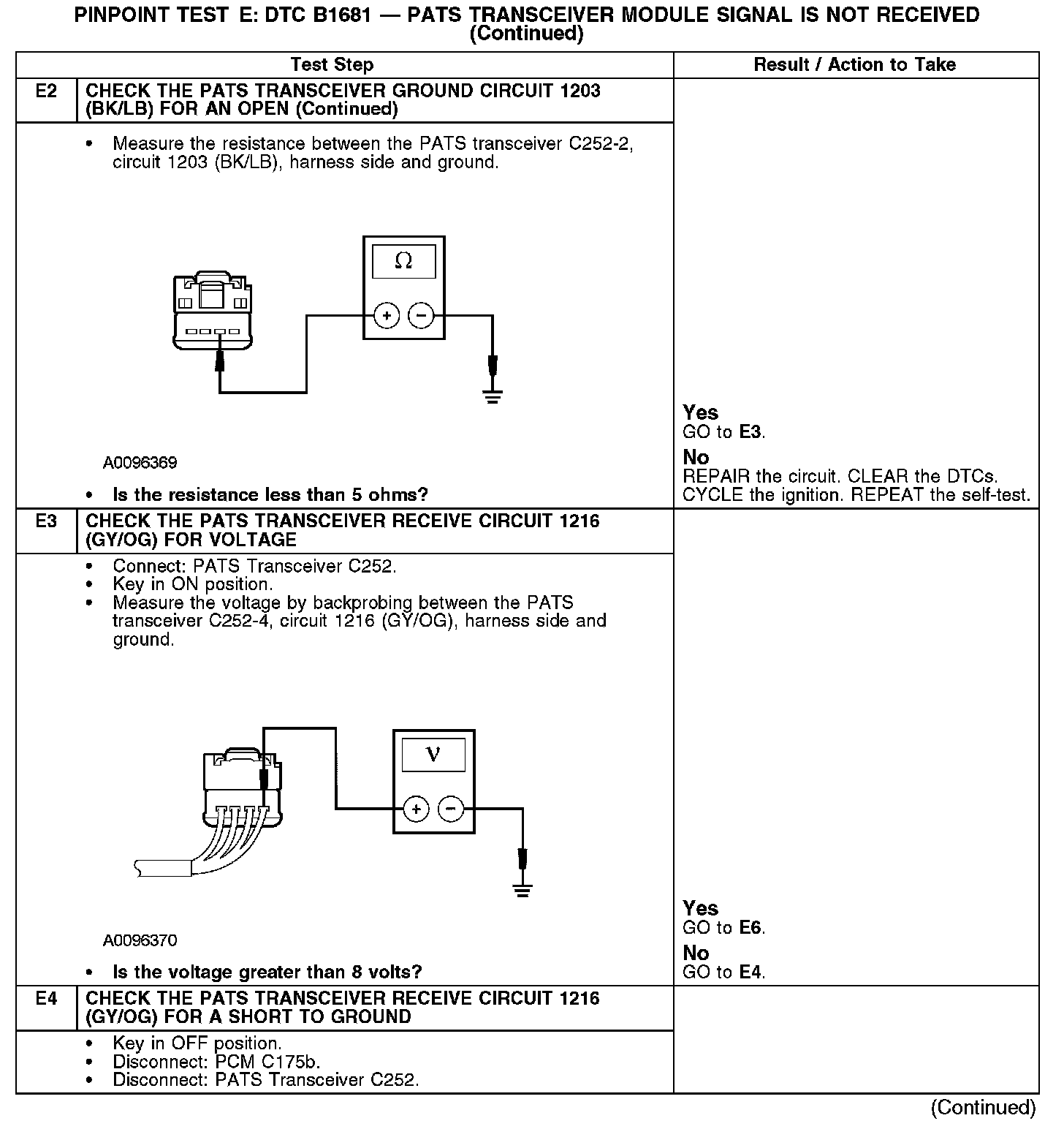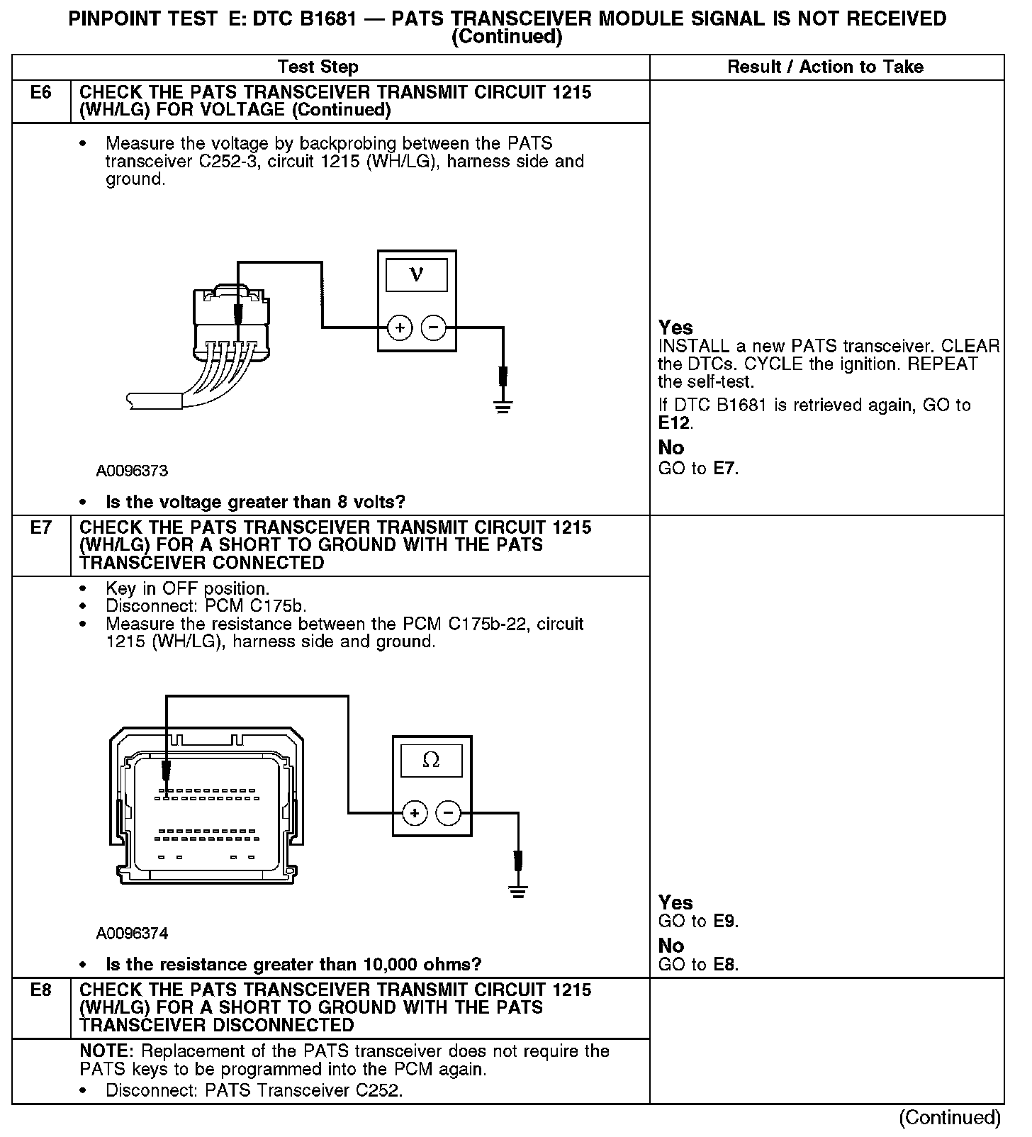 DTC B1681 - sets when the PATS transceiver signal is not received by the PCM. This diagnostic trouble code (DTC) can be caused by circuits between the PATS transceiver and the PCM, or circuits to the PATS transceiver. This can also be caused by using the incorrect PATS transceiver part number.