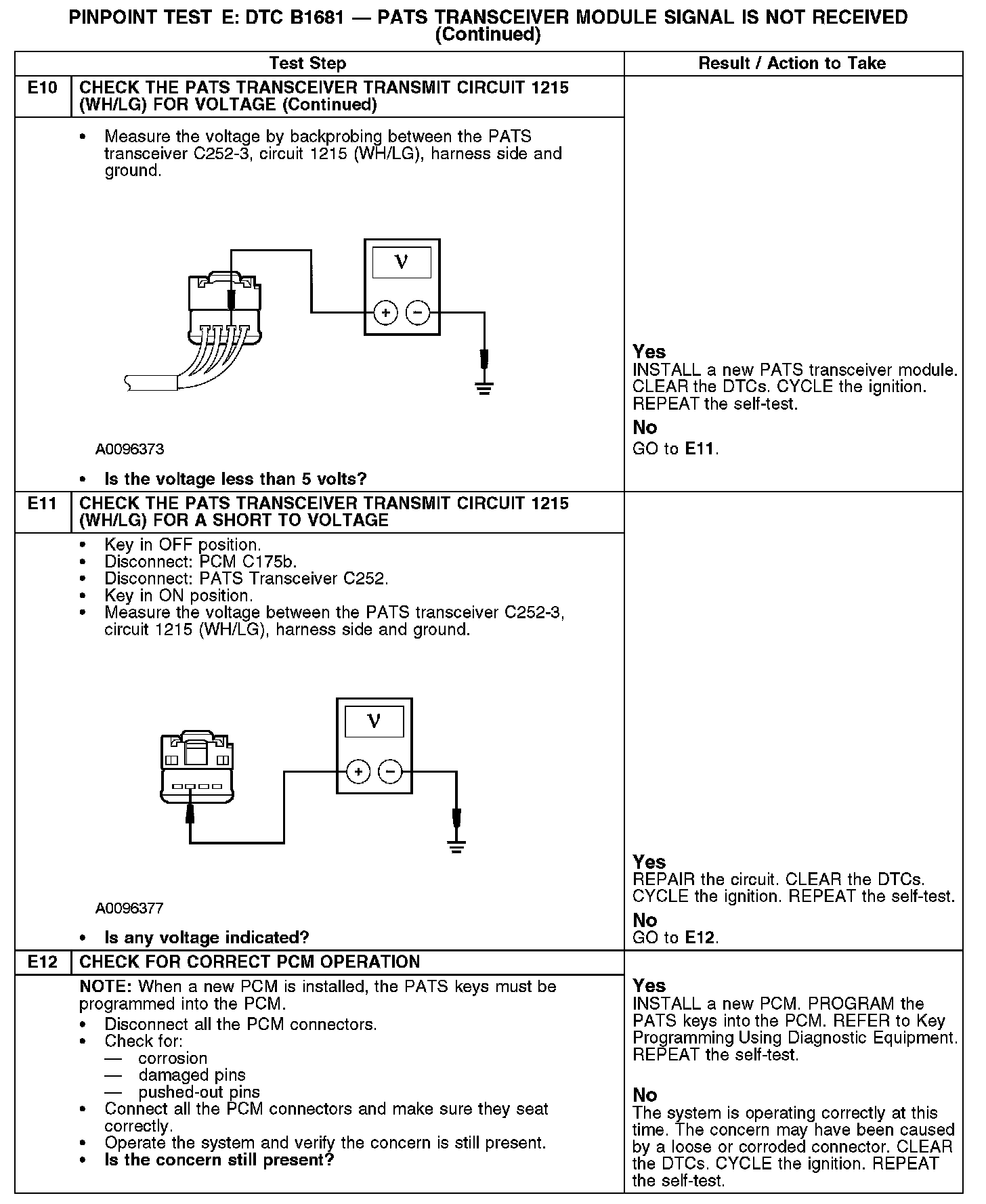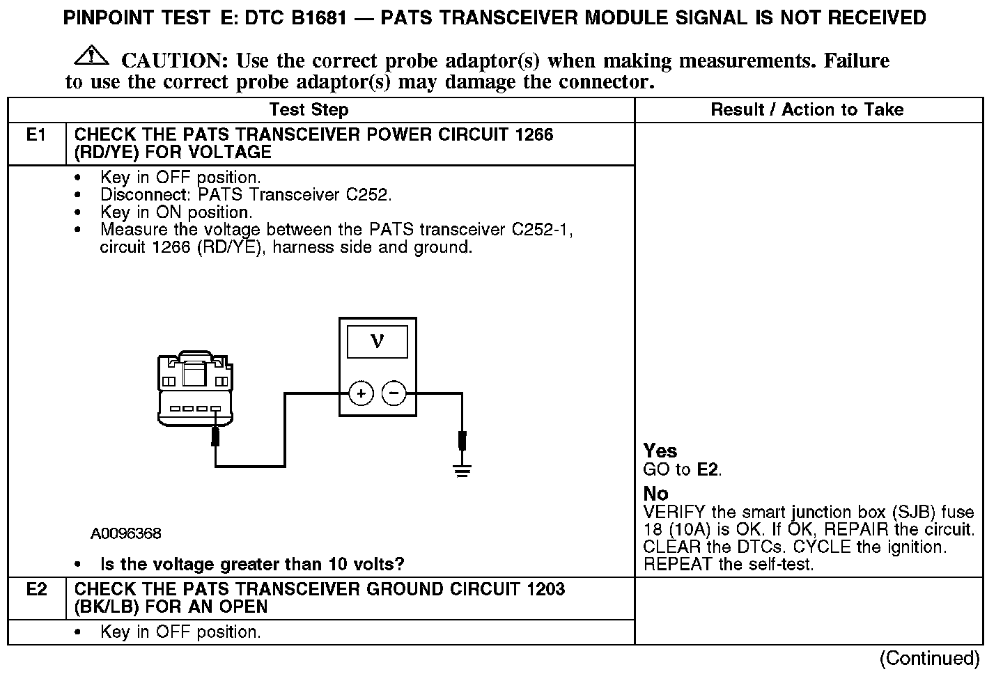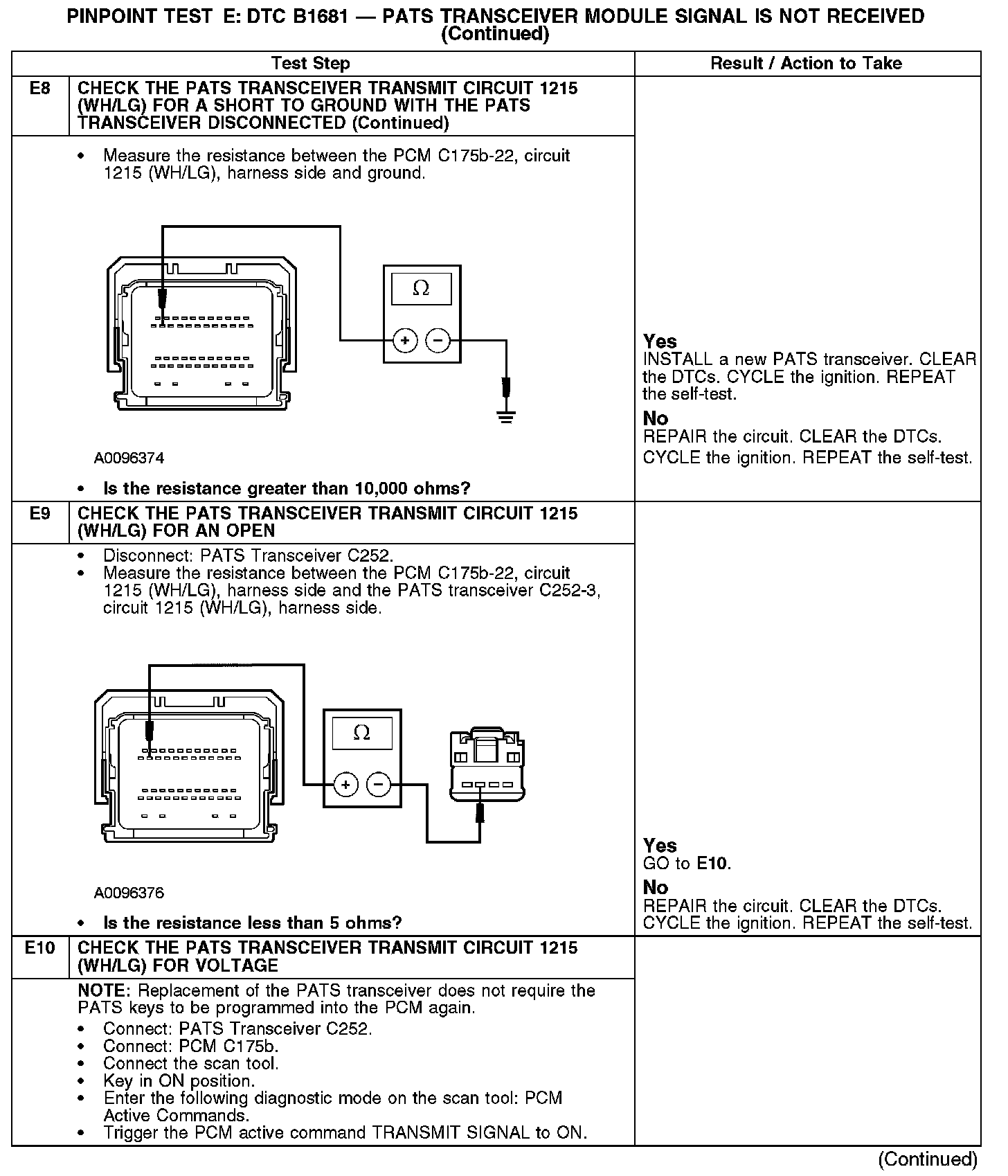 DTC B1681 - sets when the PATS transceiver signal is not received by the PCM. This diagnostic trouble code (DTC) can be caused by circuits between the PATS transceiver and the PCM, or circuits to the PATS transceiver. This can also be caused by using the incorrect PATS transceiver part number.