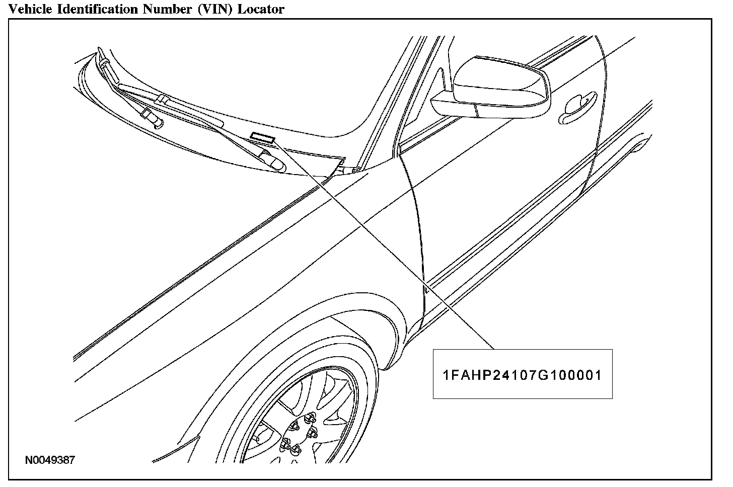 The vehicle identification number (VIN) is a 17-digit combination of letters and numbers. The VIN is stamped on a metal tab riveted to the instrument panel top, upper left of the dash. The VIN is also found on the vehicle certification (VC) label.