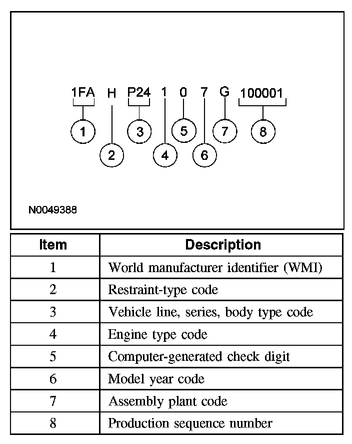 Positions 5 through 7 indicate vehicle line, series and body type.