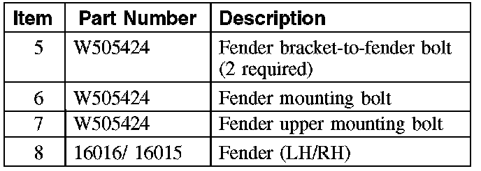 Remove the 2 lower fender mounting bolts located at the lower rear of the fender.