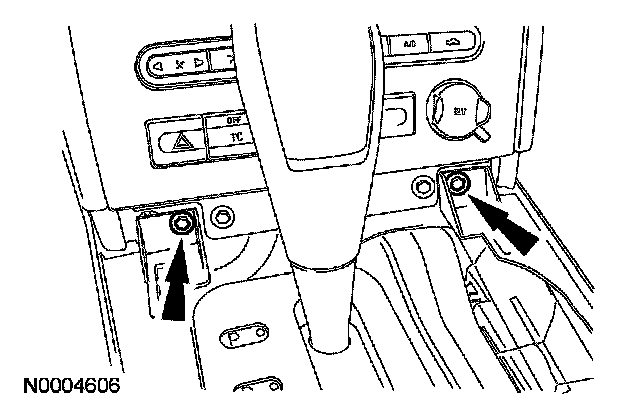 6. Remove the 2 front floor console-to-instrument panel screws.