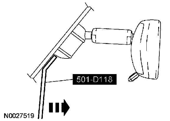 2. Using the special tool, press the mirror assembly downward along the windshield until the mount is seated on windshield bracket.