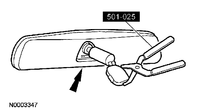 3. Insert the special tool between the mirror mount and windshield bracket from the bottom.