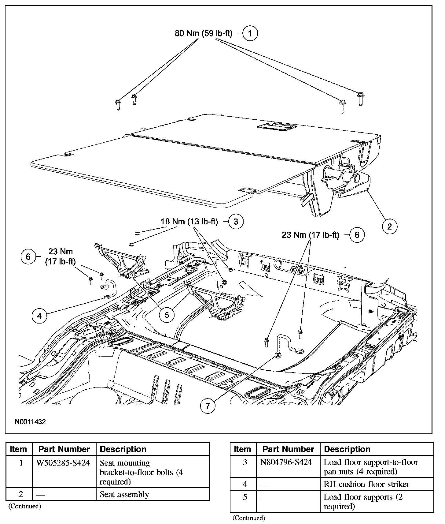 2. NOTE: 50/50 seat shown, bench seat similar. Remove the 2 load floor supports (1 shown) from the load floor panel(s).