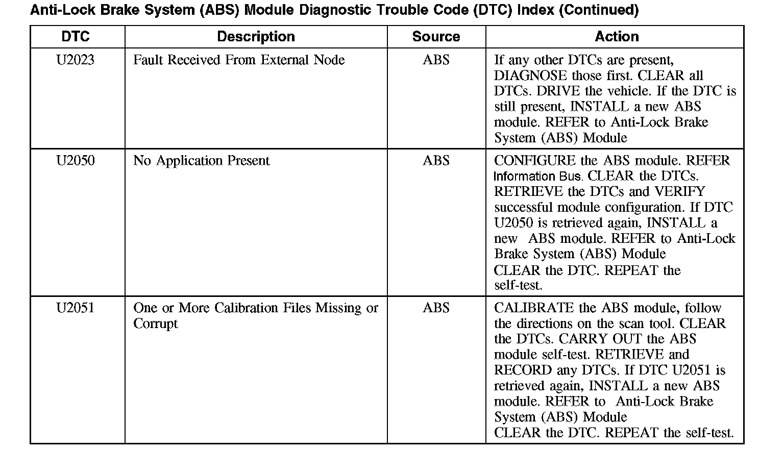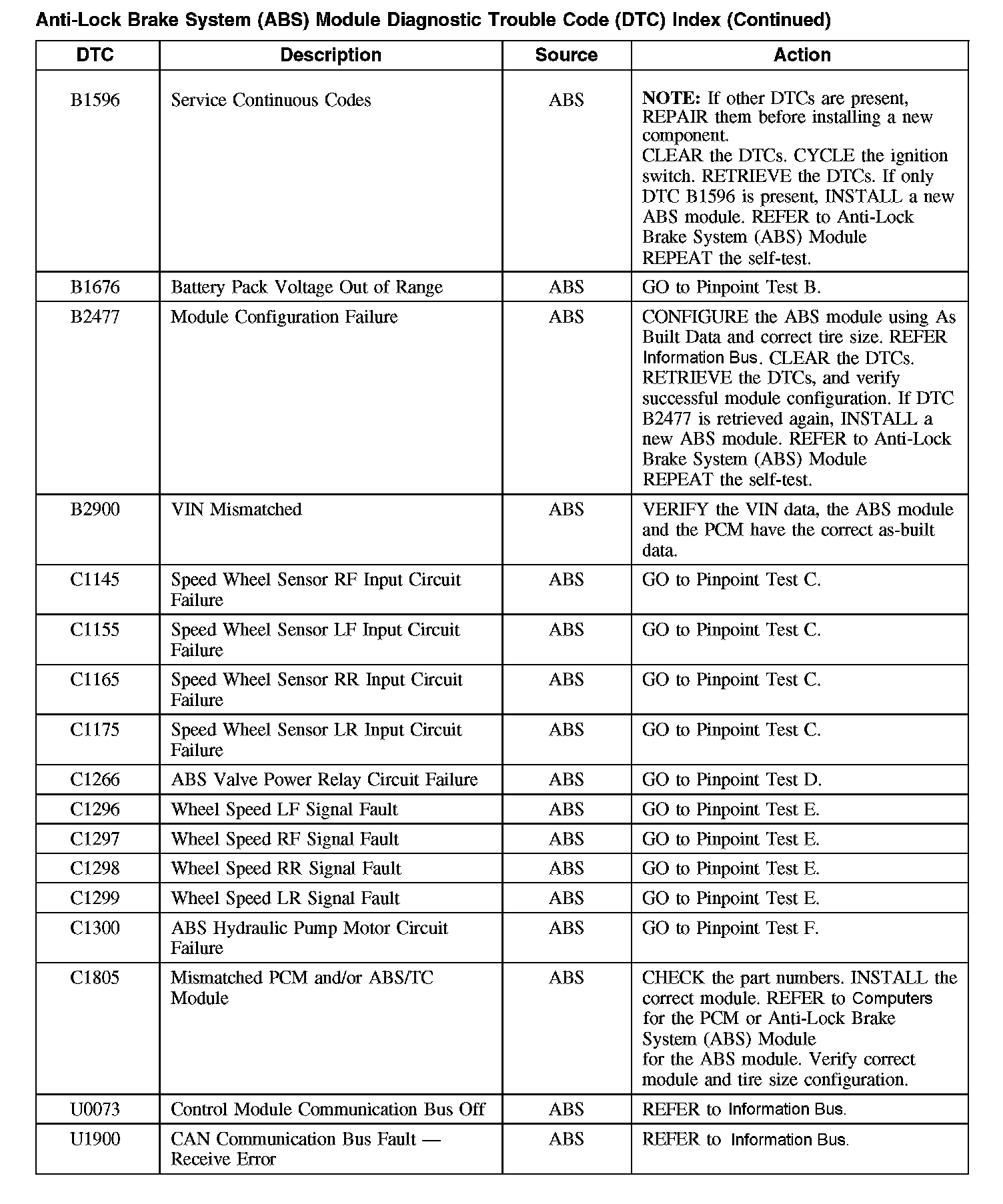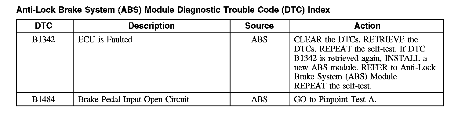 For a complete master list of ABS DTCs, refer to Body Control Systems (Multifunction Electronic Control Module).
