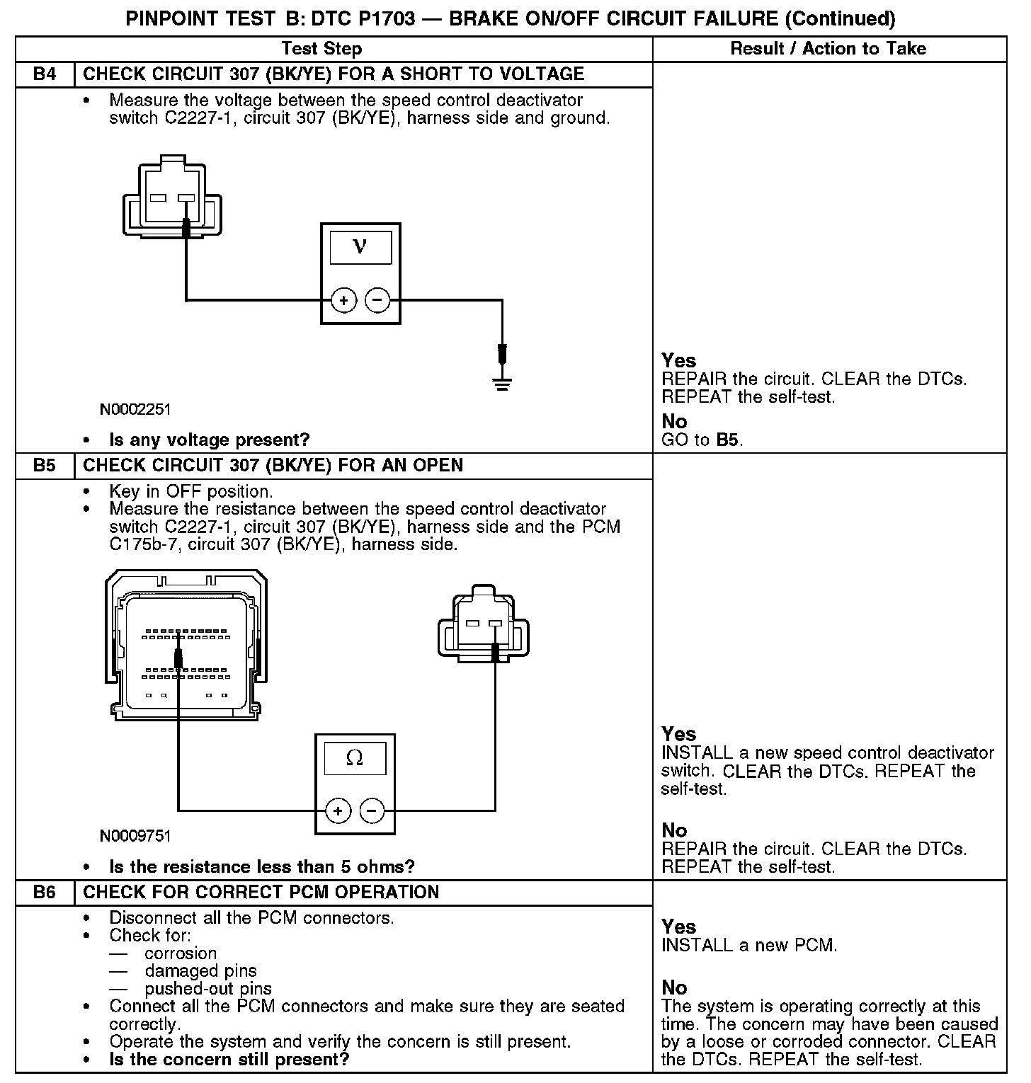 The speed control deactivator switch interrupts the power signal to the powertrain control module (PCM) through circuit 307 (BK/YE) when the brake pedal is applied firmly and passes the speed control deactivator switch trip point. This is a redundant signal to the PCM.