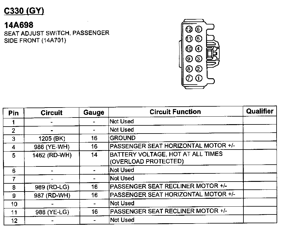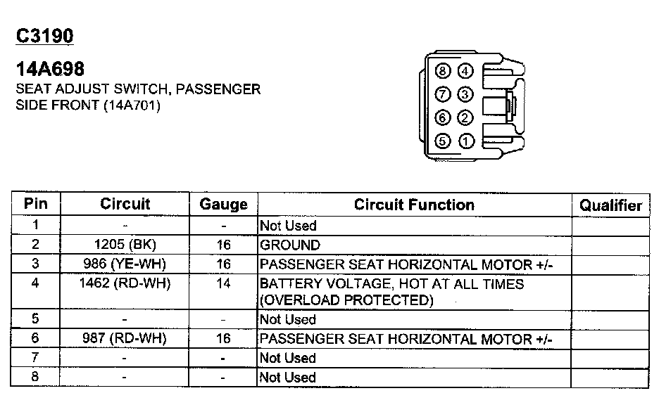 Seat Adjust Switch, Passenger Side Front