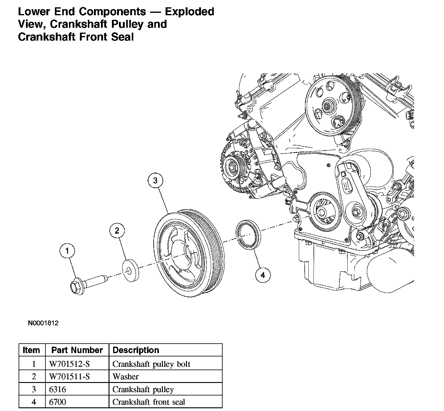 Lower End Components - Exploded View, Crankshaft Pulley and Crankshaft Front Seal: