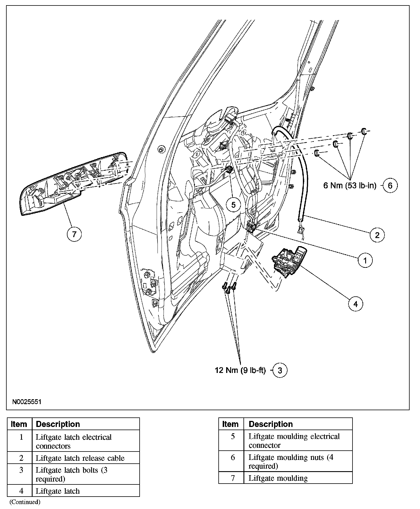 LIFTGATE HANDLE, LOCK AND LATCH - EXPLODED VIEW