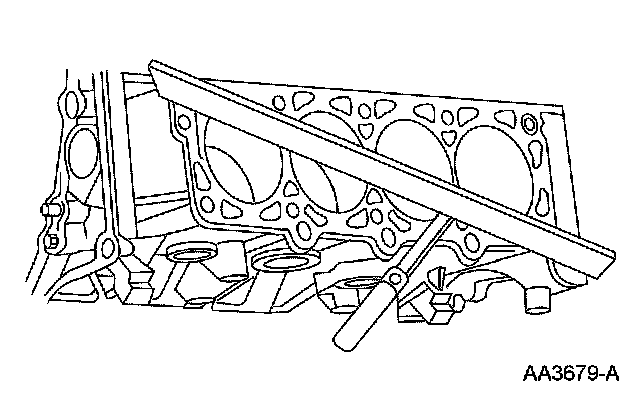 1. Use a straight edge and a feeler gauge to inspect the cylinder block for flatness. If the cylinder block is distorted, install a new short block assembly.