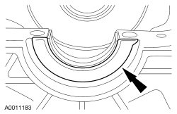 CAUTION: During engine repair procedures, cleanliness is extremely important. All parts must be thoroughly cleaned and any foreign material, including any material created while cleaning gasket surfaces, that enters the oil passages, coolant passages or the oil pan, can cause engine failure.