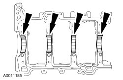 4. Lubricate the lower crankshaft main bearings with clean engine oil and install the 4 crankshaft main bearings in the lower cylinder block.