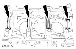 3. NOTE: Before assembling the cylinder block, all sealing surfaces must be free of chips, dirt, paint and foreign material. Also, make sure the coolant and oil passages are clear.