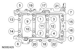 ^ Stage 4: Tighten fasteners 17 through 22 to 25 Nm (18 lb-ft).