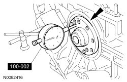 11. Using the Dial Indicator Gauge with Holding Fixture, measure crankshaft end play.