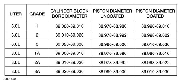 16. Using the chart, select the correct piston grade size for the cylinder bores.